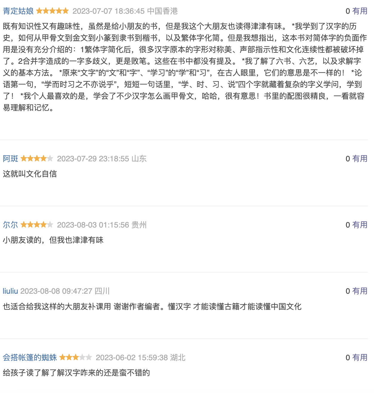 全系列共六册:《走进汉字世界》《字里字外的天文地理》《字里字外的人体世界》《字里字外的衣食住行》《字里字外的动物王国》《字里字外的人文历史》。分册科学有逻辑、行文趣味超有料、内容专业有底蕴,让孩子换一种有趣的方式学汉字吧!