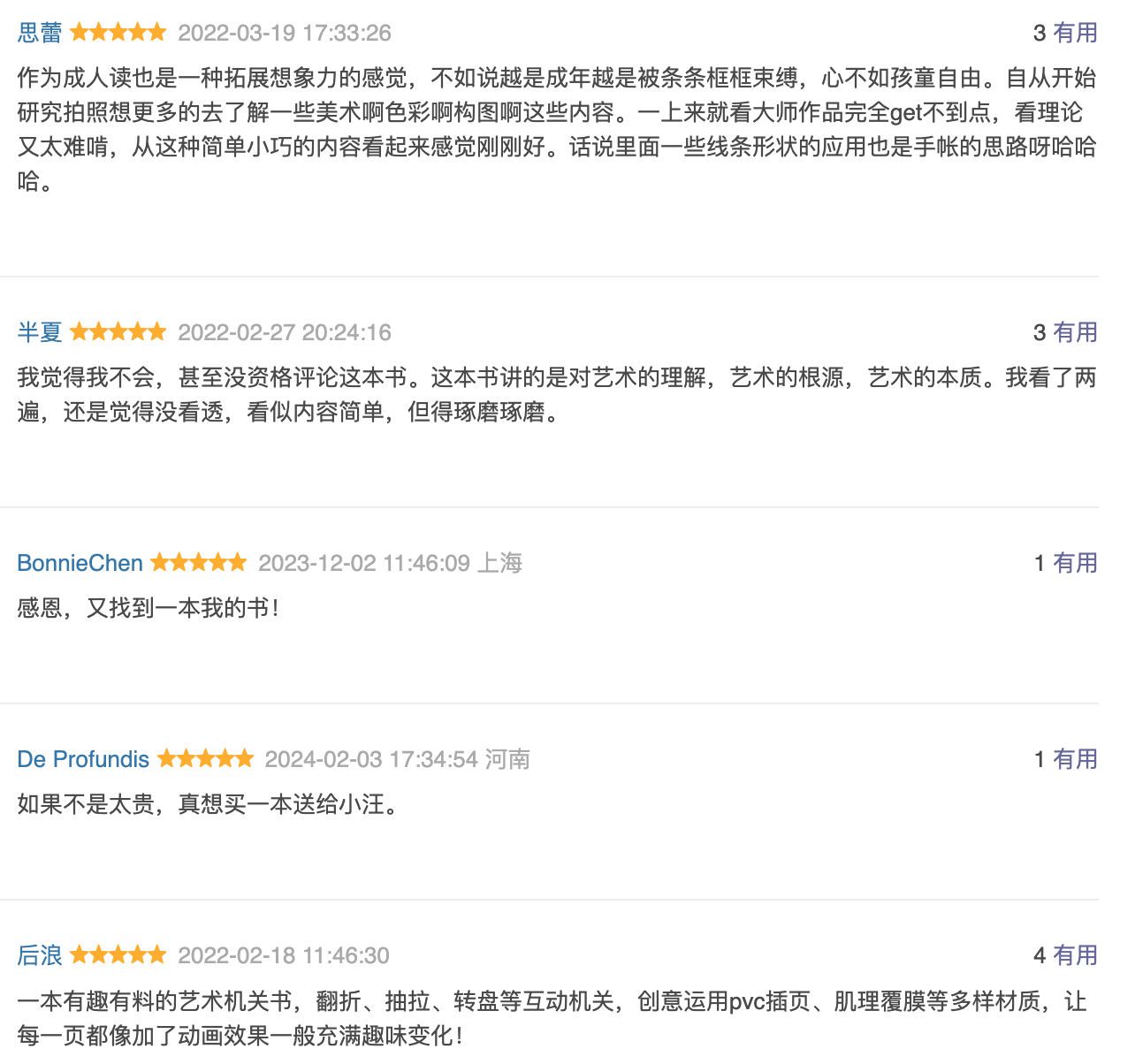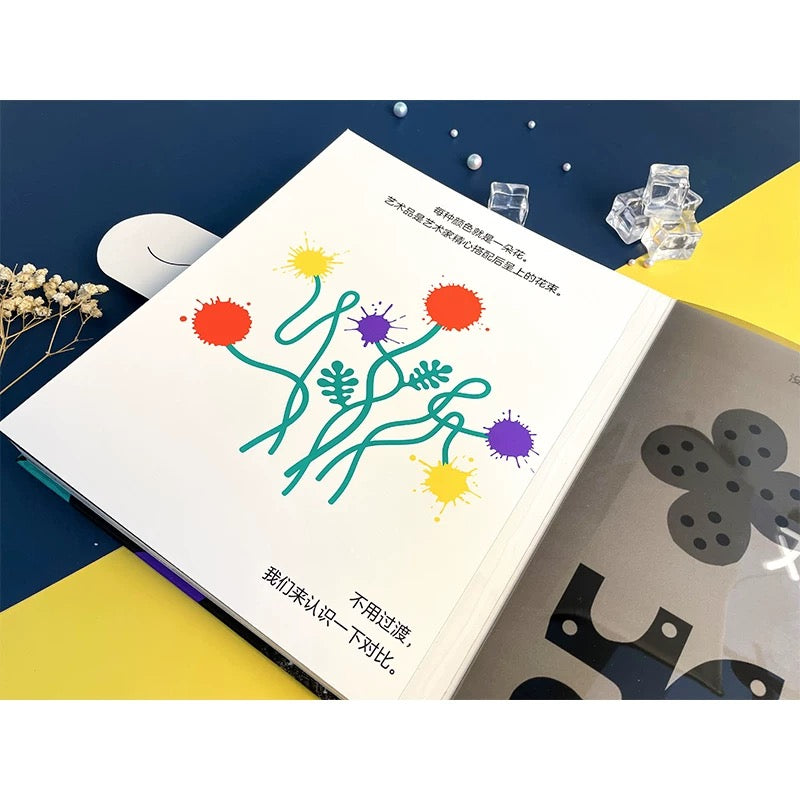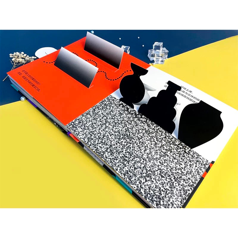 加尼耶巧妙设置翻折、抽拉、转盘等互动机关,创意运用pvc插页、肌理覆膜等多样材质,让每一页都像加了动画效果一般充满趣味变化。(本次特别联系法国原版印刷厂制作,保证工艺的完整完美体现。)点、线、形状等元素在纸上“动起来”,对比、结构、透视等原理在翻阅中“变出来”,原本孩子难以真切感知的艺术基础知识,在游戏般的阅读体验里变得轻松生动。